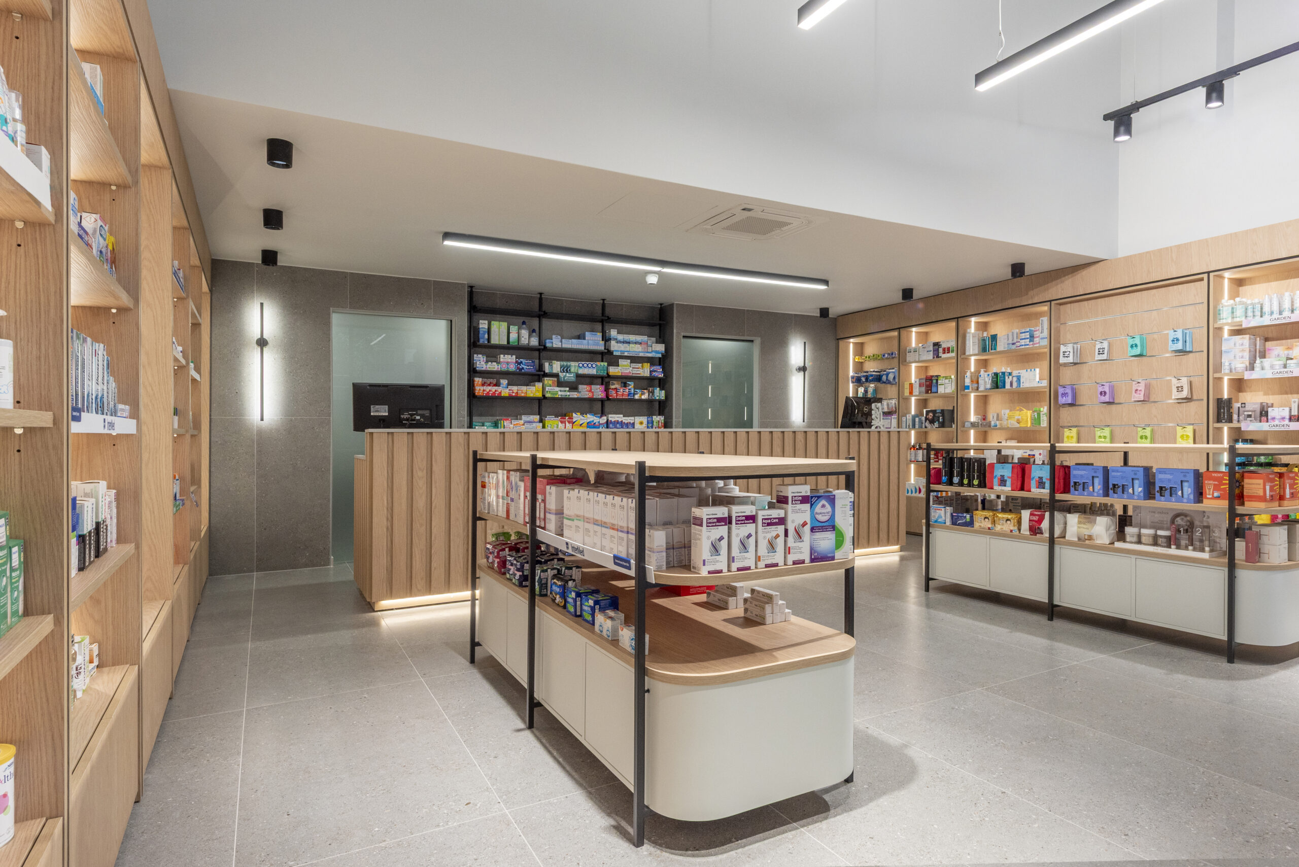 Το αποτέλεσμα είναι ένα φαρμακείο που λειτουργεί ως σύγχρονο αστικό εσωτερικό: καθαρό, ευανάγνωστο και διαχρονικό, όπου η αρχιτεκτονική υποστηρίζει διακριτικά τη λειτουργία και ενισχύει την εμπειρία του χρήστη.